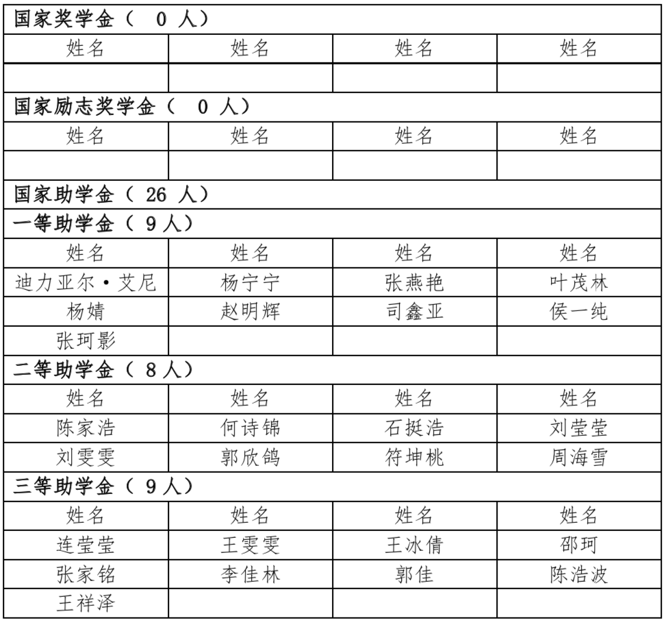 350vip8888新葡的京集团国家奖助学金拟获奖助学生公示名单