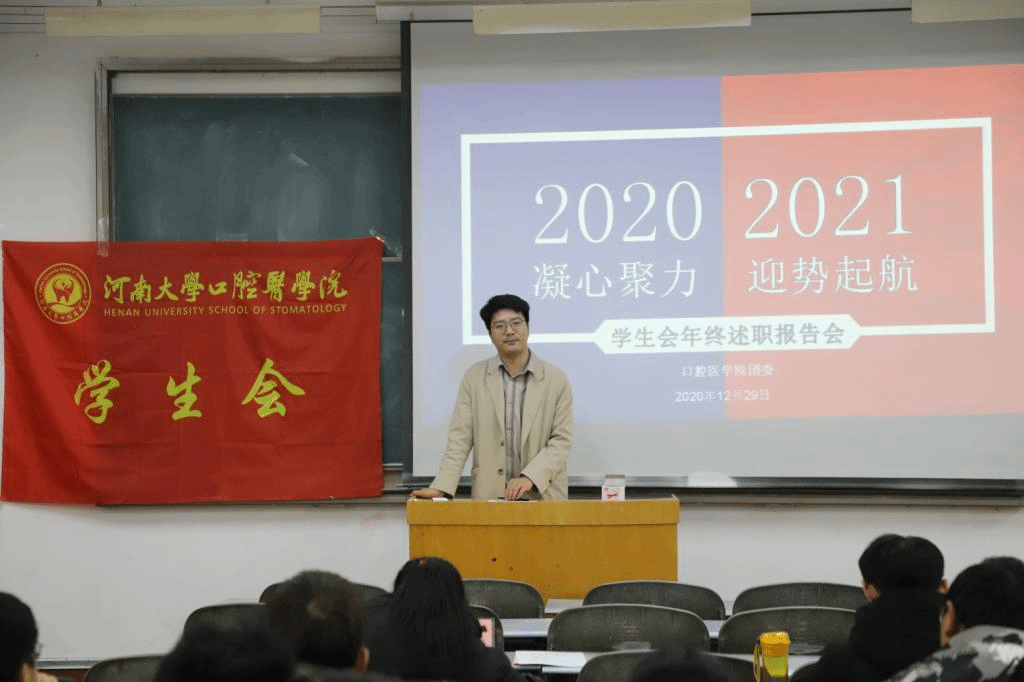 2020级优秀委员韩佳洋代表学生会全体委员发言,他述说了加入学生会的初心,并对自己工作的反思总结,对以往学生会工作的漏洞提出建议。委员代表发言完毕后,全体与会成员就学生会各项工作进行积极讨论,提出建议。最后,王天佑老师为各部门主任颁发聘书,全体与会人员合影留念。