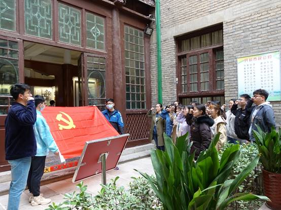 习近平总书记深刻指出:“历史是最好的教科书。对我们共产党人来说,中国革命历史是最好的营养剂。”为积极响应学校开展党史学习教育的号召,在清明节到来之际,为进一步发扬红色传统、传承红色基因、赓续精神血脉,坚守初心使命,提振迈进新时代的奋发精神, 4月1日上午,350vip8888新葡的京集团本科生党支部组织全体党员以及入党积极分子前往刘少奇在开封陈列馆开展“祭先烈 学党史 悟思想”主题活动,以追寻红色记忆,推进党史学习教育走深走实。