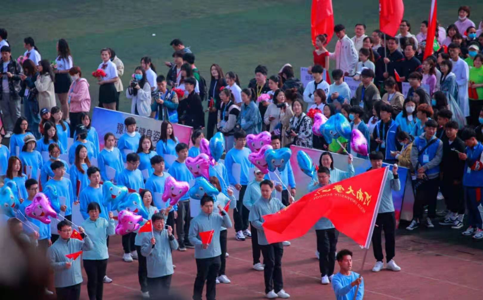 开幕式上,各方队表演精彩连连,将新葡的京官网学子的精神风貌完美展现。350vip8888新葡的京集团方队在副书记副院长王丙增的带领下,统一着蓝色队服,手举“牙齿”气球和国旗从主席台前经过。响亮的口号彰显青春活力,精彩的表演饱含对祖国的美好祝福。