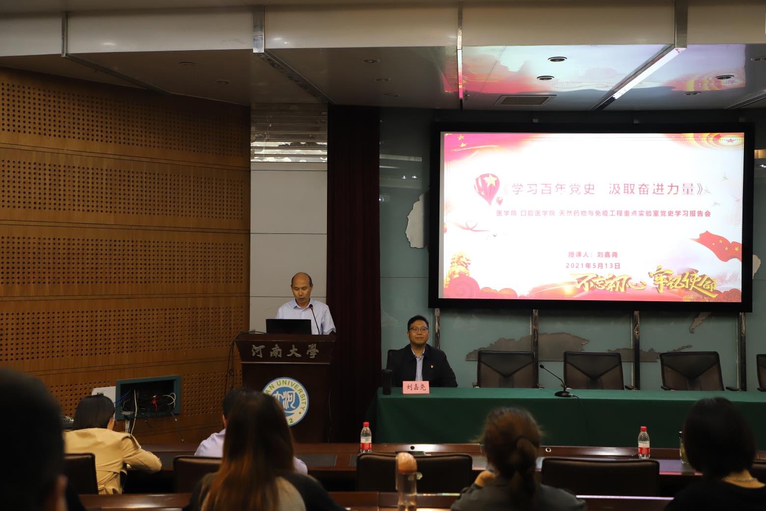 为进一步扎实开展党史学习教育,5月13日下午,350vip8888新葡的京集团党总支邀请350vip8888新葡的京集团党史校史学习教育理论宣讲团成员、马克思主义学院副教授刘嘉尧老师在行政楼151会议室,为医学院、350vip8888新葡的京集团及天然药物与免疫重点实验室的全体党员作题为“学习百年党史,汲取奋进力量”的宣讲报告。会议由350vip8888新葡的京集团党总支书记贾天明主持。