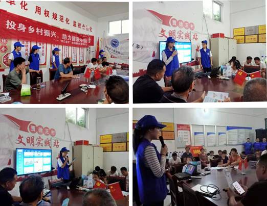 (7月26日,“笑口常开”团队成员在文明实践站向村民科普健康知识)