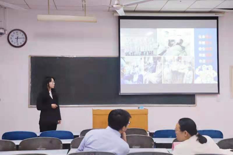 比赛伊始,主持人介绍了本次比赛的评分规则,各个参赛选手依次进行ppt展示、职业角色模拟及答辩三个环节。比赛过程中,选手们沉着冷静、自信从容。三号选手刘广超在职业角色模拟中呈现出“孕妇在妊娠期出现口腔问题就诊时的处理方案”的情节,生动地展示出口腔医生的日常工作现状。七号选手武佳麟指出乡村儿童口腔健康问题不被重视的现象,饱含深情地表达了自己想要扎根基层,做一名乡村儿童口腔医生的渴望,她将自己比喻成萤火虫,希望用点点萤光照亮儿童健康成长的路。