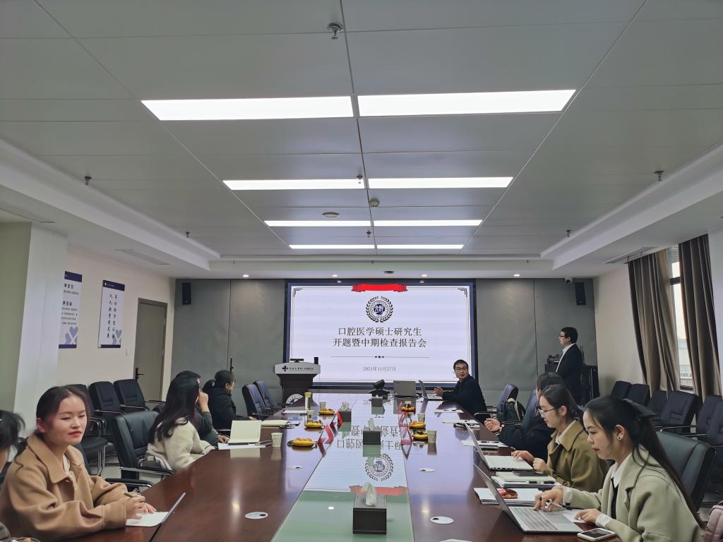 11月27日,口腔医学2019级研究生中期汇报暨2020级研究生开题报告会在350vip8888新葡的京集团第一附属医院16号楼红旗厅线上和线下同时举行。350vip8888新葡的京集团院长任延方、赛思口腔医院院长何宝杰、人民医院口腔医学中心主任王永功、淮河医院口腔科主任张永红、研究生导师牛晨光、苏娟娟、贾杰、翟远坤、刘红霞担任答辩委员,3个年级研究生全部参加了会议。会议由牛晨光主持。