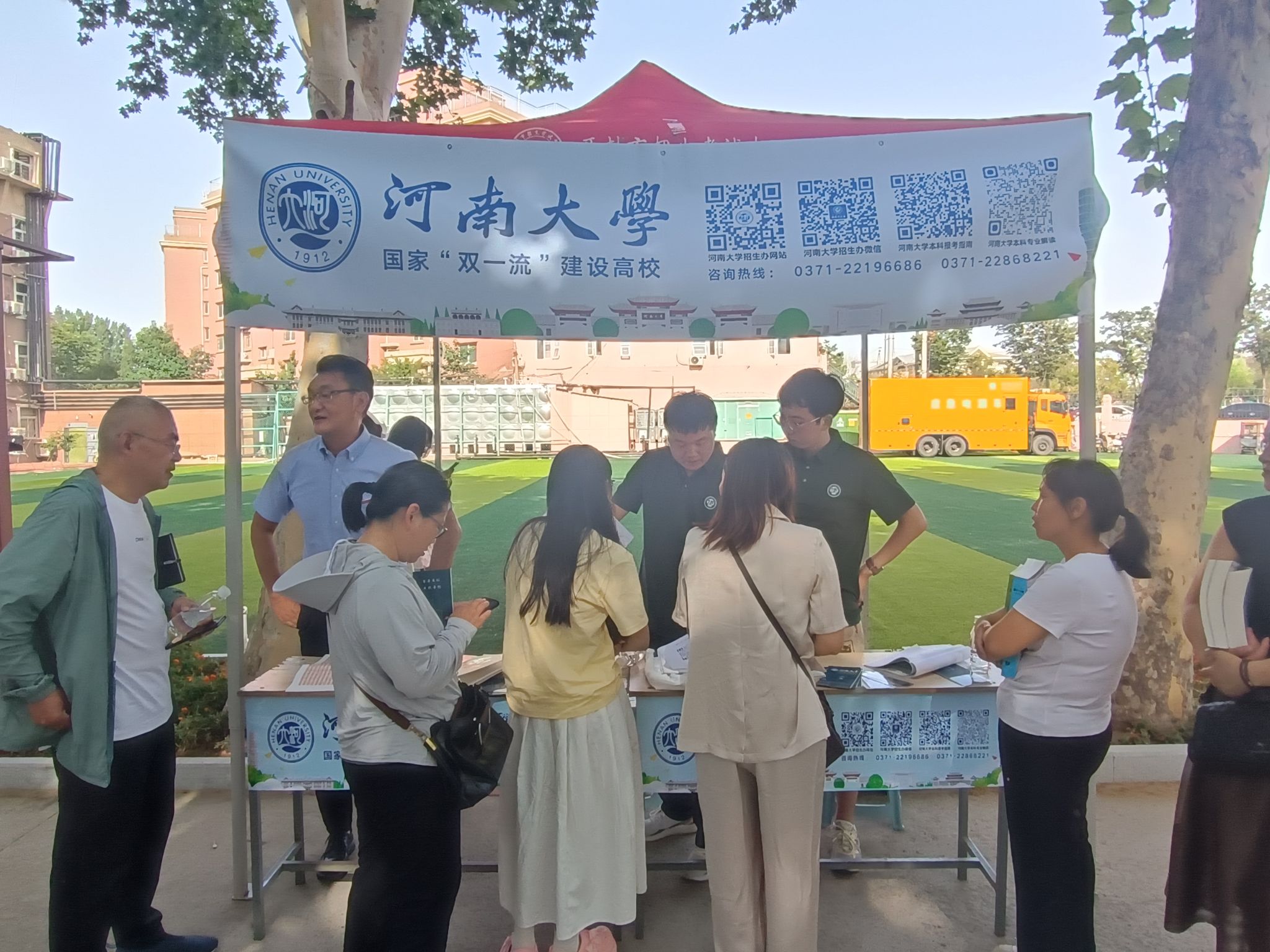 2024年6月24日下午2点,350vip8888新葡的京集团在开封求实高级中学设立350vip8888新葡的京集团招生咨询台,学院林波副院长、江通老师以及志愿者同学们,热情地接待了每一位前来咨询的学生和家长,耐心为他们解答关于学校招生分数线、学科优势、师资力量、校园生活等方面的问题,同时发放350vip8888新葡的京集团招生简章和宣传册,供报考学生和家长参考。