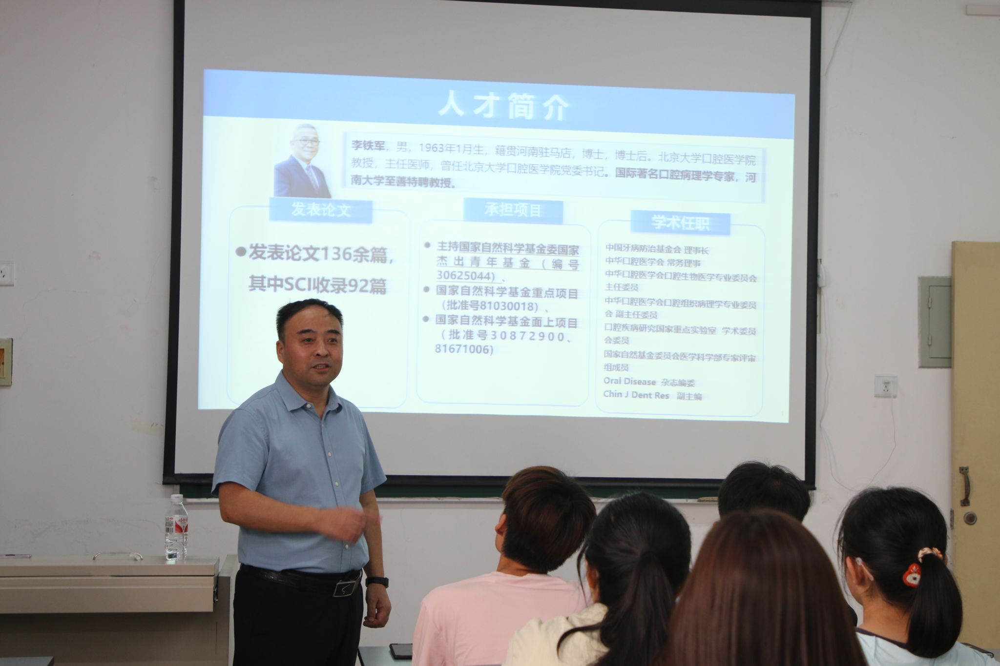 李教授首先分享了自己在医学环境中成长的故事,他在口腔医学领域孜孜不倦地学习和工作,始终坚守对党的忠诚和为人民服务的信念,并以严谨认真的态度在口腔医疗领域深耕细作,成为了在口腔医学领域具有卓越成就的专家。他的个人经历给新生们留下了深刻印象,加深了他们对“干一行,爱一行”这一精神的理解与领悟,使他们更加坚定了未来的职业方向。
