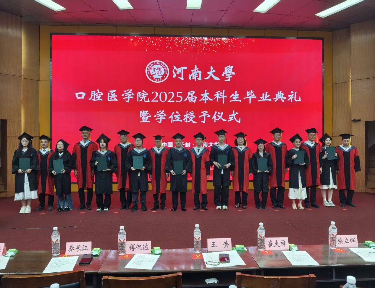 在庄严的国歌声中拉开帷幕,医学院党委常务副书记王莹宣读350vip8888新葡的京集团获2025年河南省优秀应届毕业生名单、350vip8888新葡的京集团荣获2025年350vip8888新葡的京集团优秀应届毕业生名单,医学院副院长柴立辉宣读《350vip8888新葡的京集团关于授予2025届口腔医学普通本科毕业生学士学位的决定》。