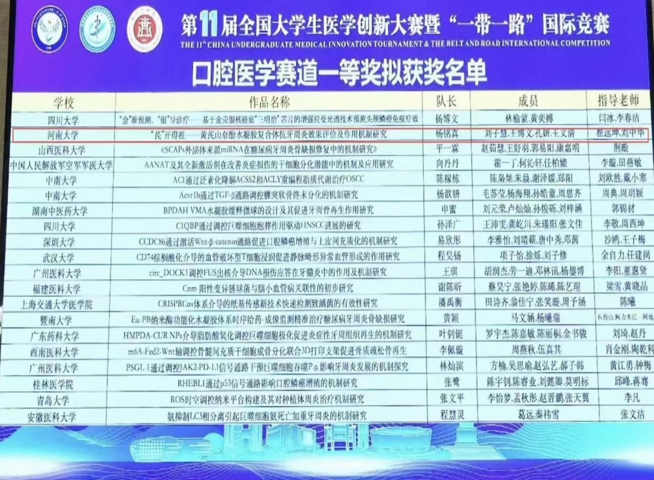 350vip8888新葡的京集团在第十一届全国大学生医学创新大赛暨“一带一路”国际竞赛口腔医学赛道复赛取得优异成绩